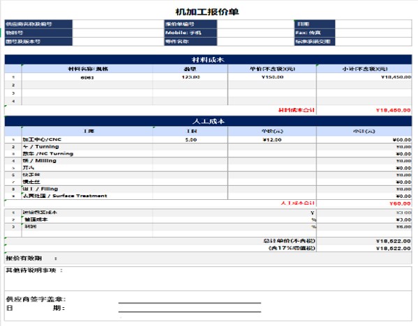 机加报价